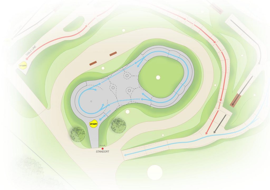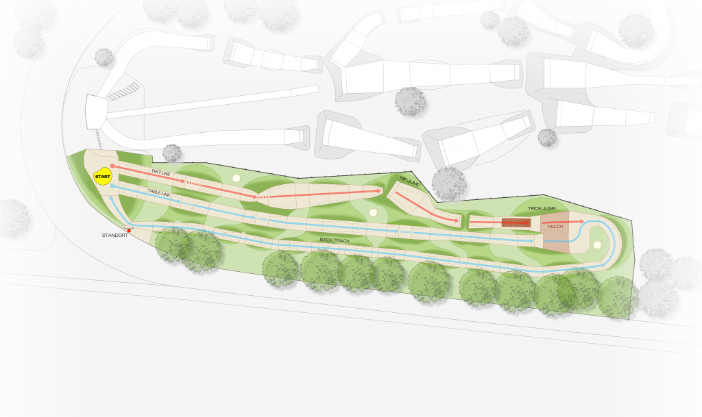 Nachdem dieser erste Schritt ab­ge­schlos­sen ist, setzt sich unser Planungs­team mit der Entwurfs- und Ausfüh­rungs­planung der Anlage aus­ein­ander. Es entstehen Maßstabs­getreue 2D- und 3D-Zeichnungen inklusive Bemaßung, in denen die Wünsche aller Nutzer*innen gebündelt werden. Hierbei verbindet sich aka­de­misch erworbene Expertise im Umgang mit der Erstellung von Bauzeichnungen und jahrelanger Um­setzung von eigenen Mountainbike-Parks. Dabei fokussieren wir uns neben der Optik der Anlage vor allem auf die Praktikabilität. Unsere oberste Prämisse ist es nämlich, dass die Anlage nicht nur gut aussehen, sondern sich vor allem vom Beginn an gut und stimmig nutzen lassen. Ebenso liegt ein weiterer Fokus darauf, die Pflege­inten­sivität der Anlage möglichst gering zu halten. Dies wird schon in der Planung durch die Berücksichtigung von Sickergruben, Rigolen und Drainagen gewährleistet. Zum anderen soll durch die steigende Attraktivität unserer Anlagen ein hohes Interesse der Beteiligten geweckt werden, woraus sich in vorherigen Projekten eine soziale Infrastruktur hinter unseren Anlagen entwickelt hat, welche langfristig für regelmäßige Wartungsintervalle sorgt.
